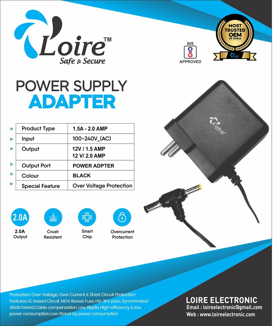 Be the first to review “Loire (Safe & Secure) 1.5A to 2.0AMP POWER SUPPLY ADAPTER (Black)”