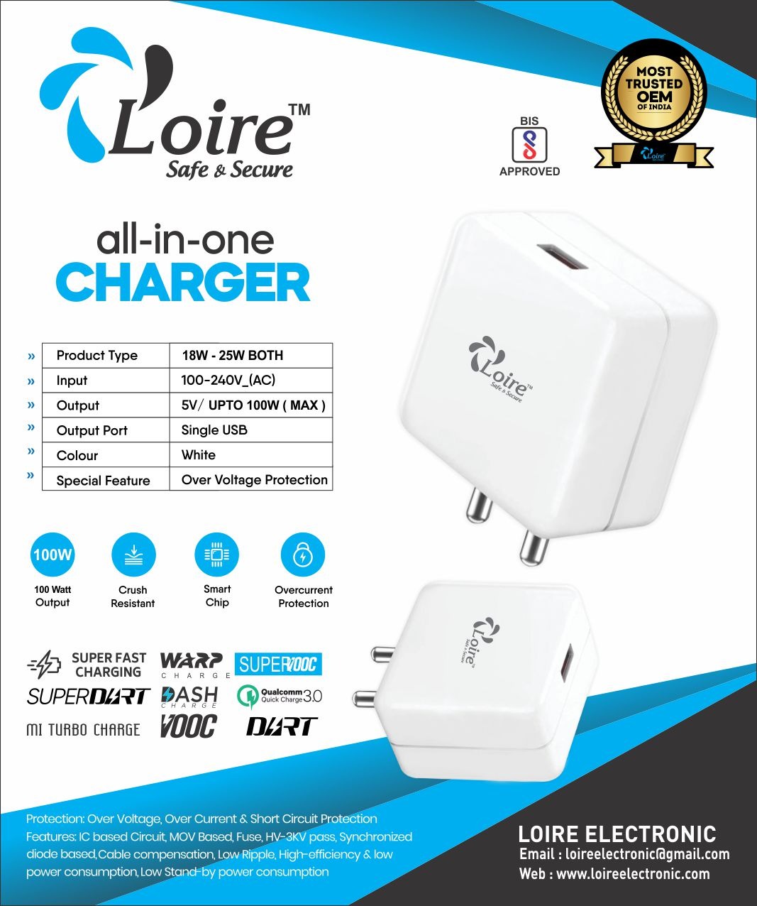 Loire (Safe & Secure) 18W to 25W Upto 100W Max All In One USB Charger (White)