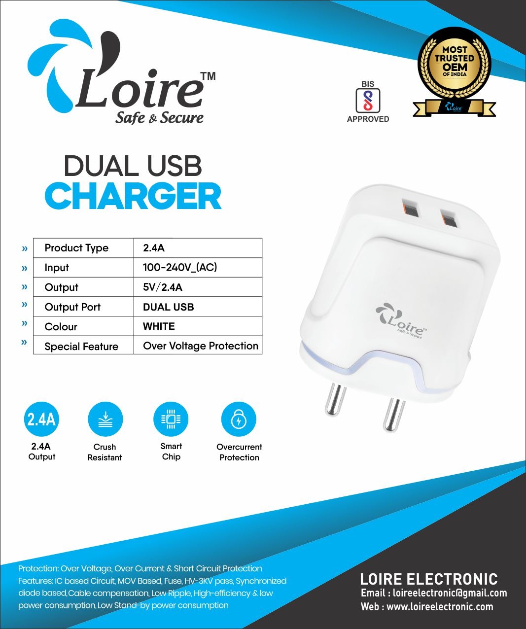 Loire (Safe & Secure) 2.4A Dual USB Adapter (White)
