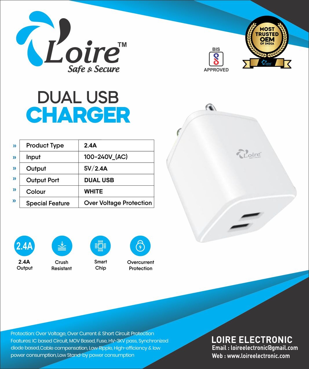 Loire (Safe & Secure) 2.4A Dual USB Charger (White)