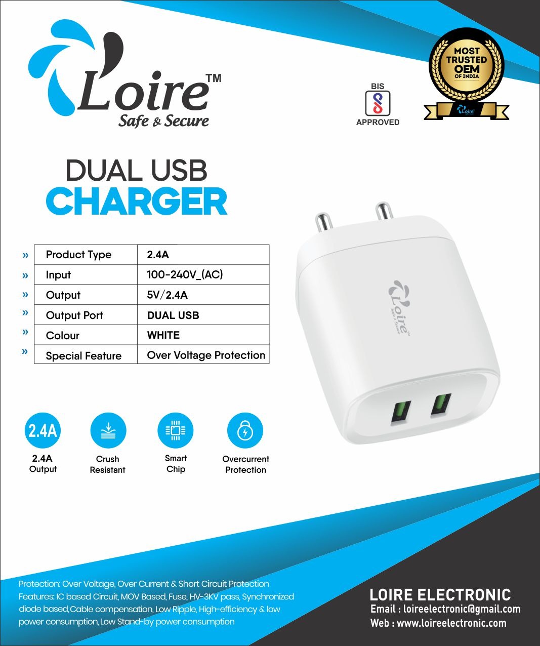 Loire (Safe & Secure) 2.4A Dual USB Charger (White)