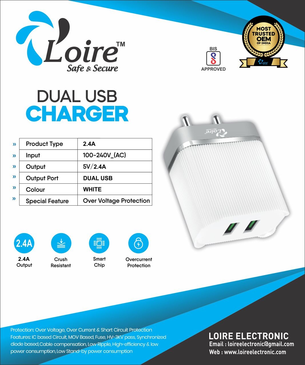 Loire (Safe & Secure) 2.4A Dual USB Charger (White)