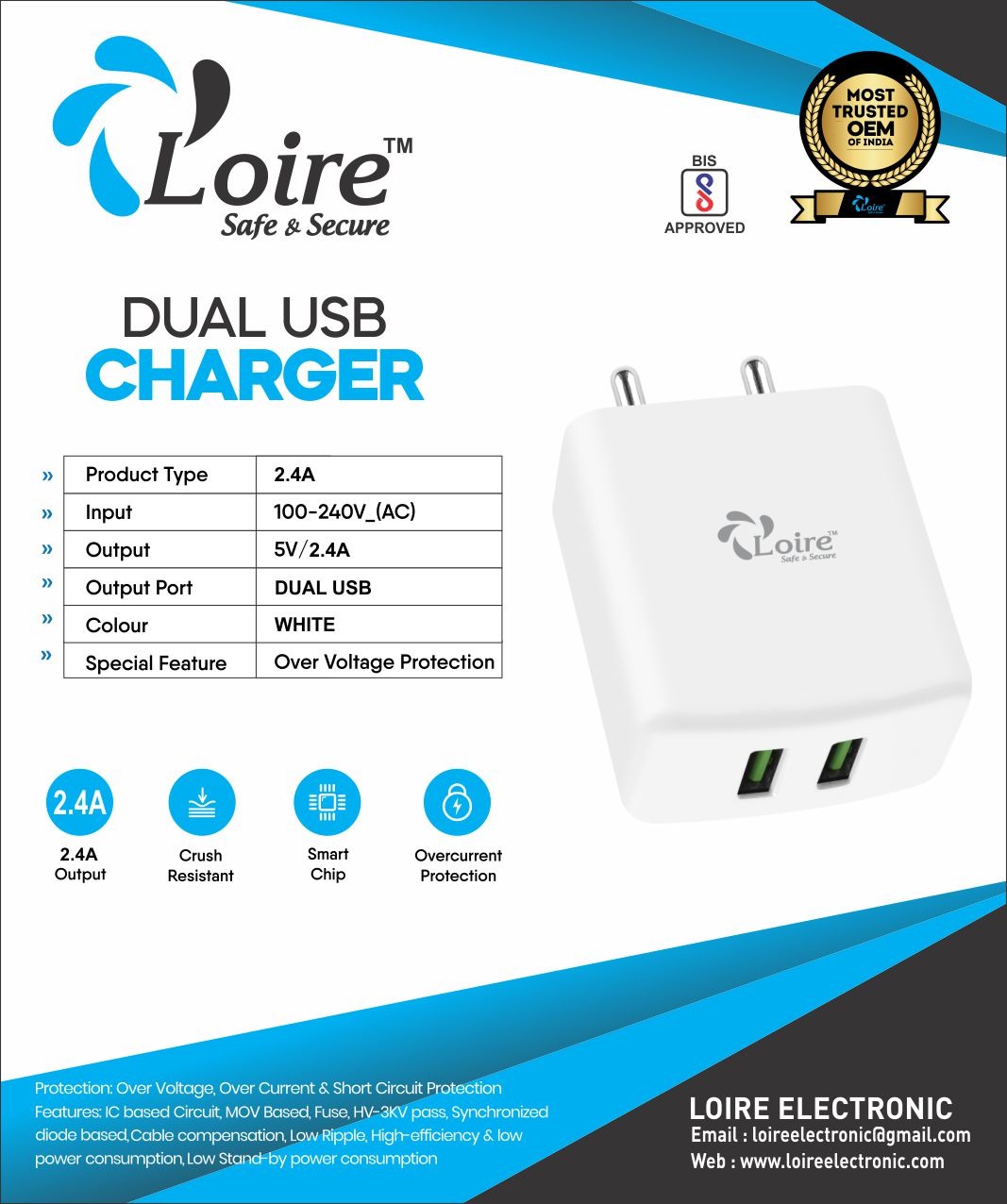 Loire (Safe & Secure) 2.4A Dual USB Charger (White)