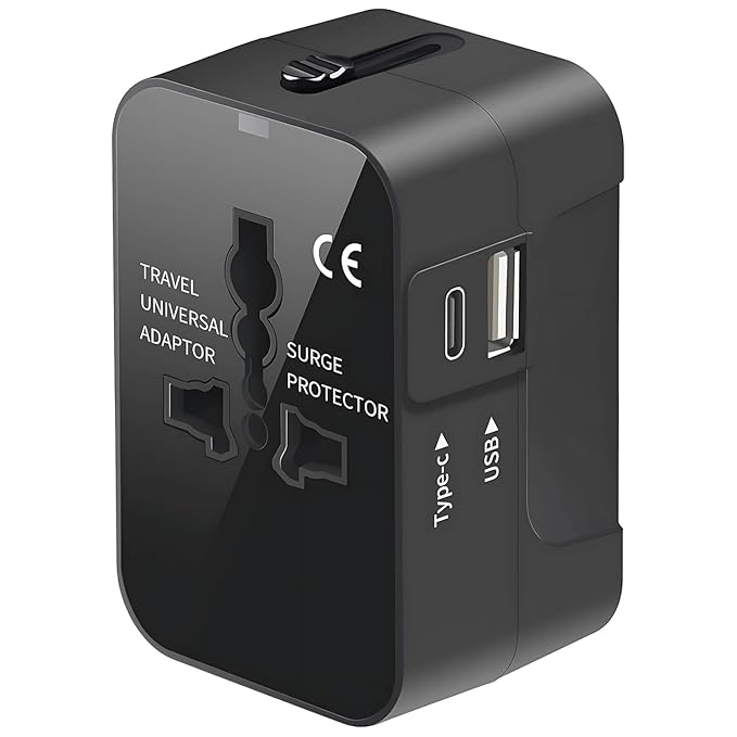 Loire® Universal Travel Adapter, International All in One Worldwide Travel Adapter and Wall Charger with USB and Type C Port with Multi Type Power Outlet USB 2.1A, Travel Charger (Black)